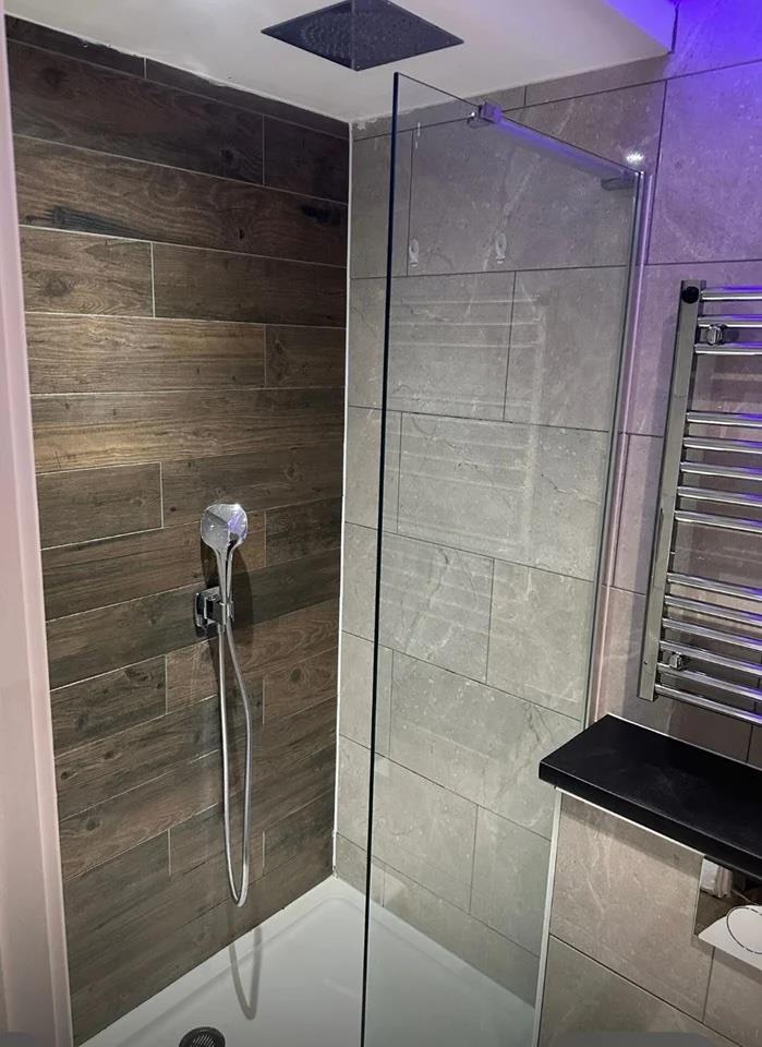 The space is bright and has a CONTEMPORARY finish throughout. Kitchen area, double bed, searting area with comfy chair and TV, plus a great bathroom with LARGE walk-in shower.